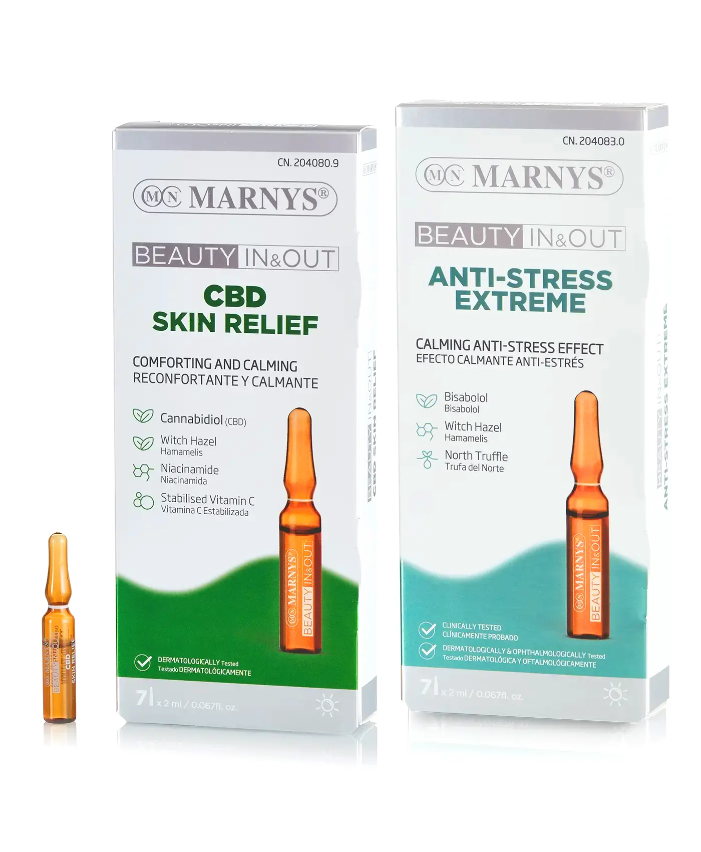 Îți prezentăm pachetul special pentru îngrijirea tenului sensibil, cu două produse special concepute pentru a calma, hidrata și proteja tenul. Fiolele CBD Skin Relief și Anti-Stress Extreme, cu o acțiune blândă asupra tenului și un efect reconfortant, ideale în rutina de îngrijire a unui ten sensibil. Utilizate în fiecare dimineață, fiolele Anti-Stress Extreme calmează pielea și îi asigură o protecție sporită pe parcursul întregii zile. Fiolele CBD Skin Relief, folosite în rutina de seară, reduc iritațiile pielii, reglează secreția de sebum și hidratează tenul.