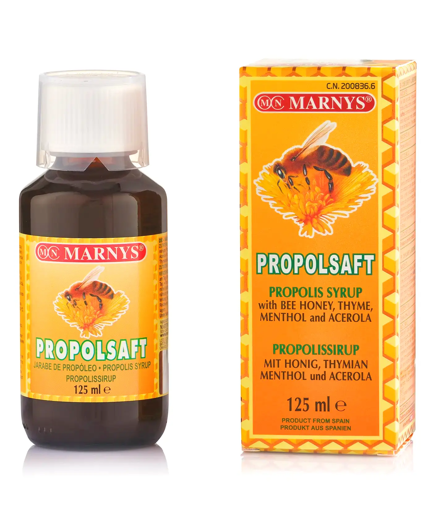 Sirop de Propolis îmbogățit cu Miere de Albine, Acerola, Cimbru și Mentol.
