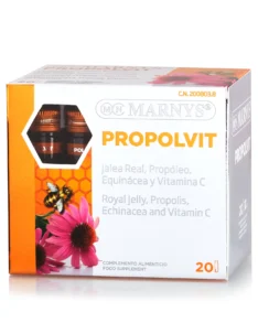 Propolvit din gama Marnys este un supliment nutrivit din ingrediente 100% naturale sub forma de fiole. Contribuie la intarirea sistemului imunitar si ofera energie datorita complexului de ingrediente active Laptisor de matca, Propolis, Echinaceea si Vitamina C cu absorbtie rapida. Este fabricat in Spania la cele mai inalte standard GMP. Nu contine lactoza sau organisme modificate genetic.